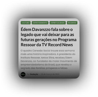 Édem Davanzzo é muito mais do que um comunicador, o novo líder das famílias brasileiras é uma figura inspiradora que reconhece profundamente o poder da comunicação para transformar vidas. Sua visão vai além do entretenimento, ele vê a televisão como uma ferramenta crucial de responsabilidade social, capaz de elevar uma nação através do fortalecimento das famílias.